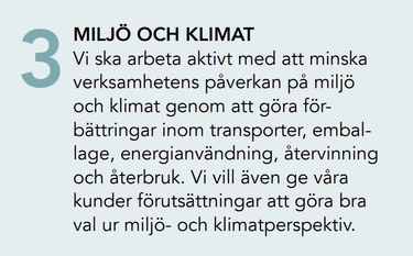 Vi presenterar årligen vårt hållbarhetsarbete i vår års- och hållbarhetsredovisningen. Läs om hur vi reglerar vårt hållbarhetsarbete här.